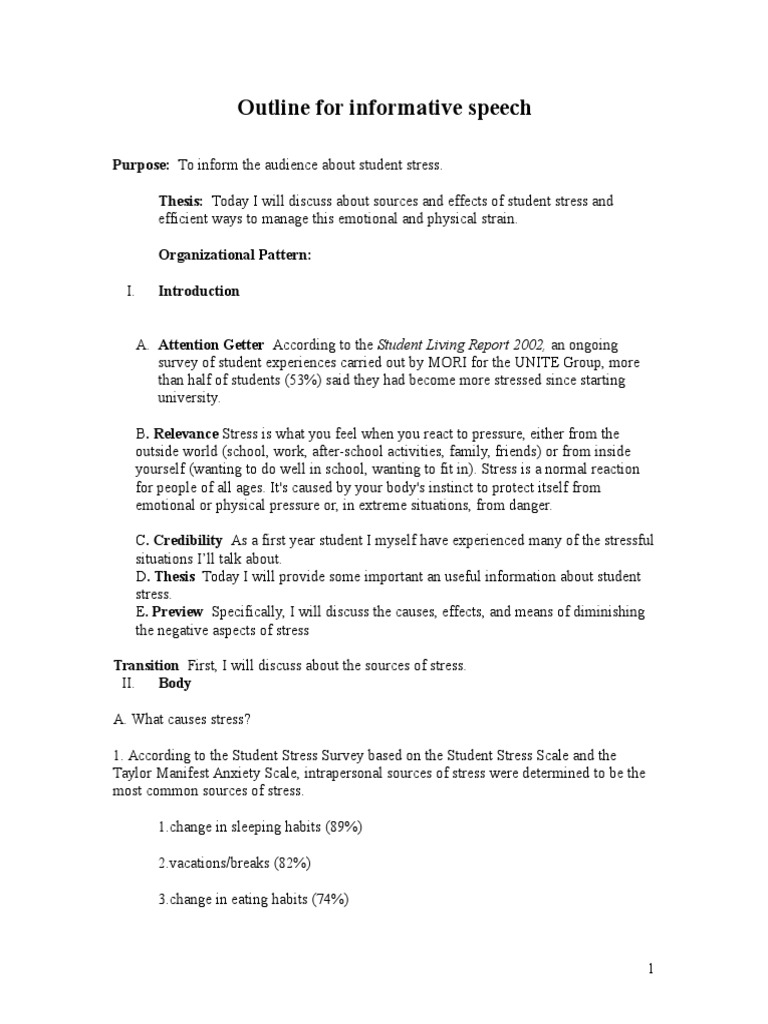 If you're a parent or teacher looking on behalf of a child, before making a final decision please do involve the person who is actually going to. Please do include the child when deciding on a topic. To inform the audience about student stress. It is a type of speech in which the speaker transfers learning to a listener on a particular point. Informative speech outline on dog breeds.